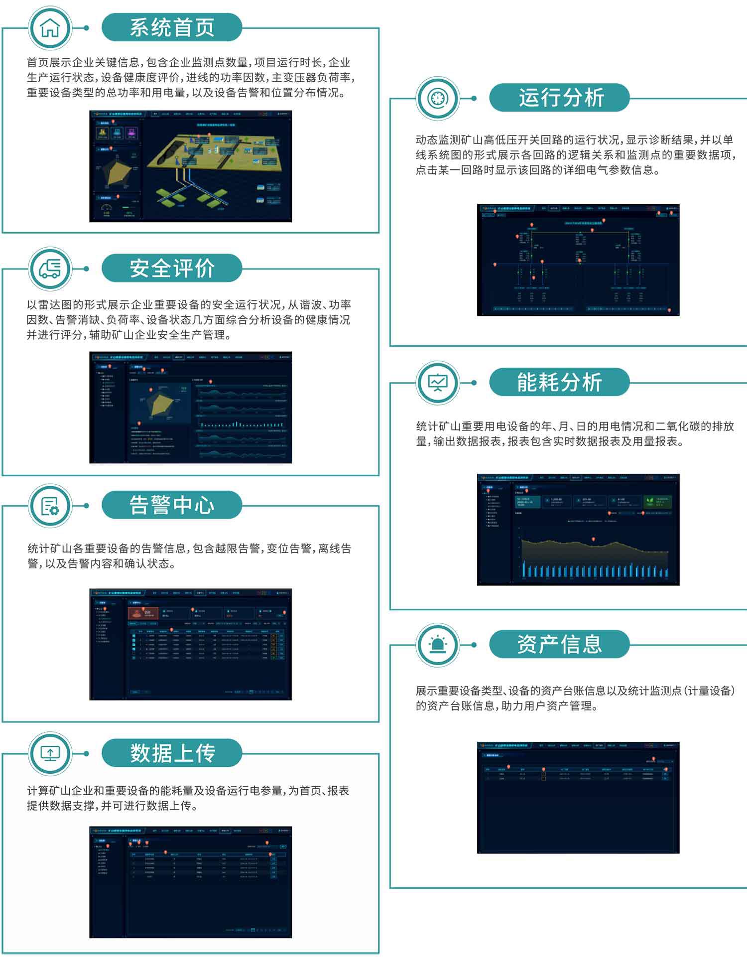 根據《煤礦及重點非煤礦山重大災害風險防控建設工作總體方案》要求,自主研發的礦山(煤礦)重要設備用電監測系統,幫助煤礦行業能耗體加強能源消耗日常調度、提升能源管理精細化水平、開展能源審計、審查以及節能改造投資等提供決策支撐服務。