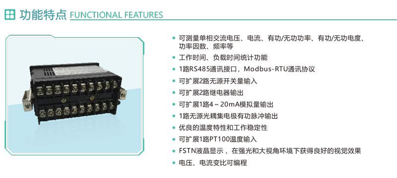 1.可測量單相交流電壓、電流、有功/無功功率、有功/無功電度、