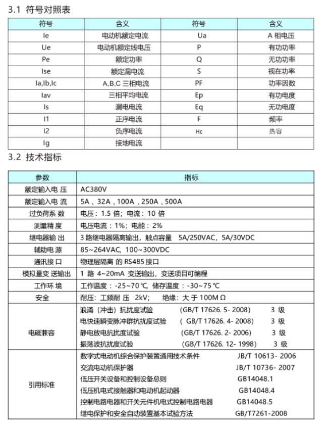 7、保護整定參數可由專業人員根據現場電機的實際參數進行設定,掉電不丟失