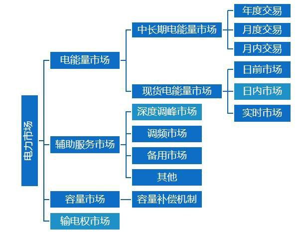 •現貨市場:根據短期及超短期負荷預測及電網安全約束,通過市場競爭,形成可執行的發用電計劃和市場價格,調節發用電曲線和中長期合同曲線的偏差,確保電力電量平衡。