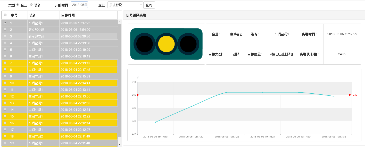 (5)監控重點區域的電氣設備運行狀態、配電室環境溫度、煙感、浸水,預防電氣火災的發生及其他危害的發生,將電氣危害的損失最小化。