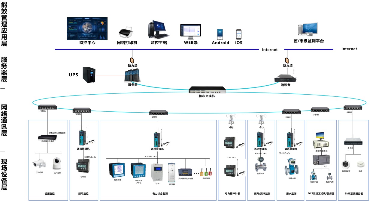 智慧能源管理系統的是包含對水、電、氣冷熱能源使用狀況管理,及現場壓力、溫濕度、視覺影像、生物識別等參數實行集中監測、管理和分散控制。以區域數據為基礎,結合“互聯網+大數據“的有效利用,自由組合成個能耗單元”,通過