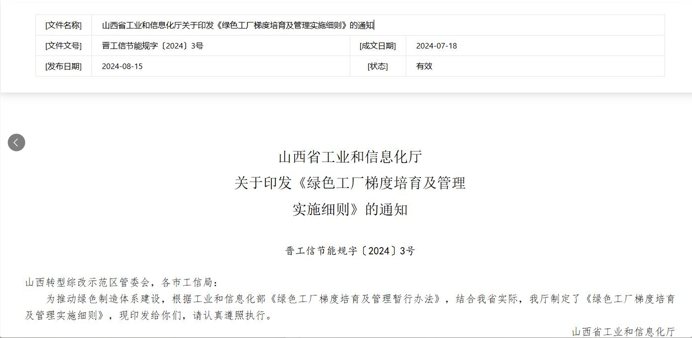 加快建設(shè)2025年山西省綠色工廠申報(bào)指南
