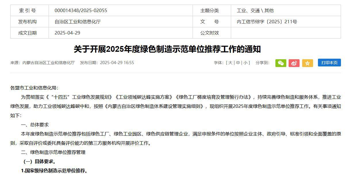 加快推進(jìn)2025年內(nèi)蒙古省綠色工廠申報指南