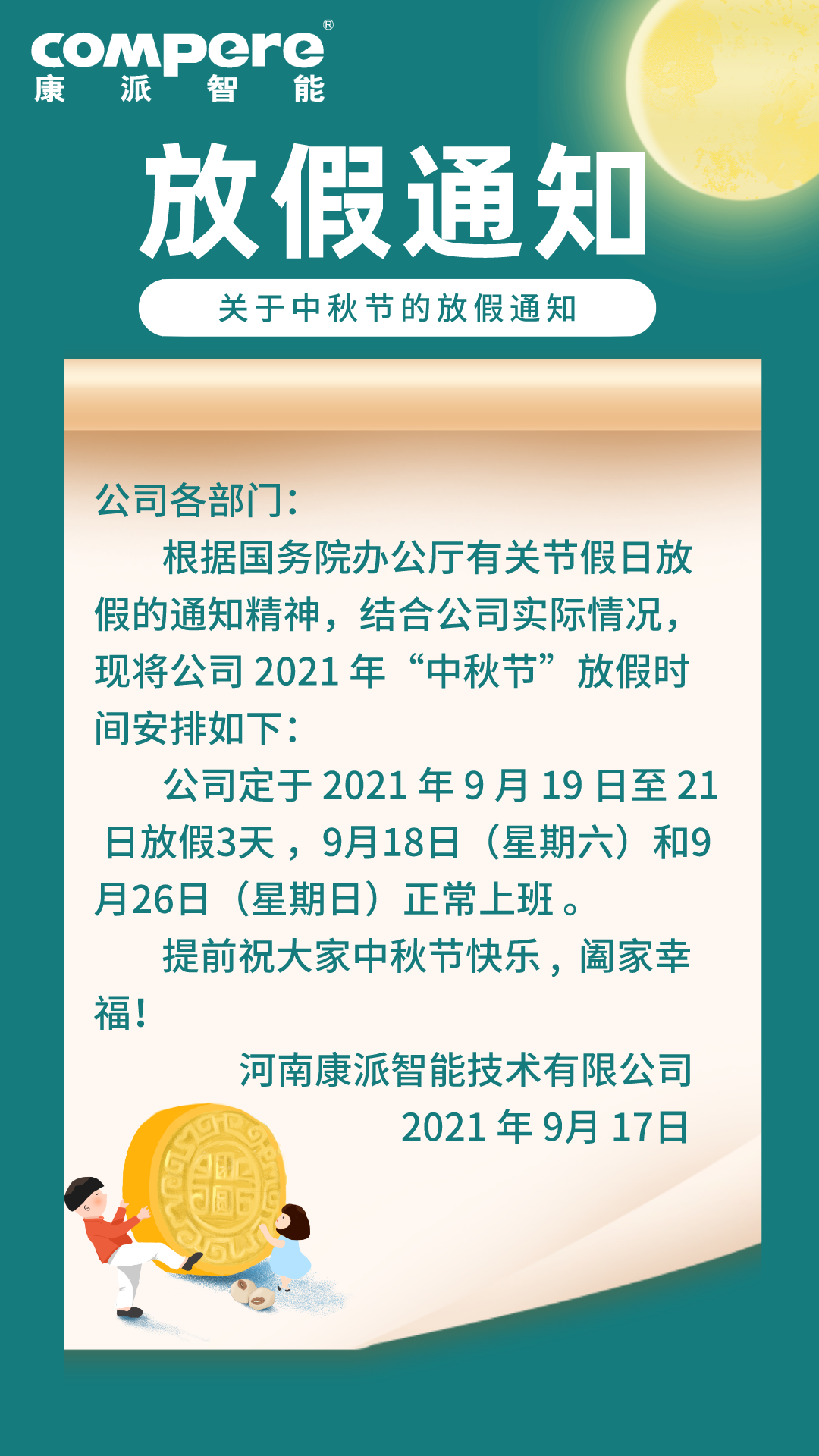 根據國務院辦公廳有關節假日放假的通知精神,結合公司實際情況,現將公司 2021 年“中秋節”放假安排如下: