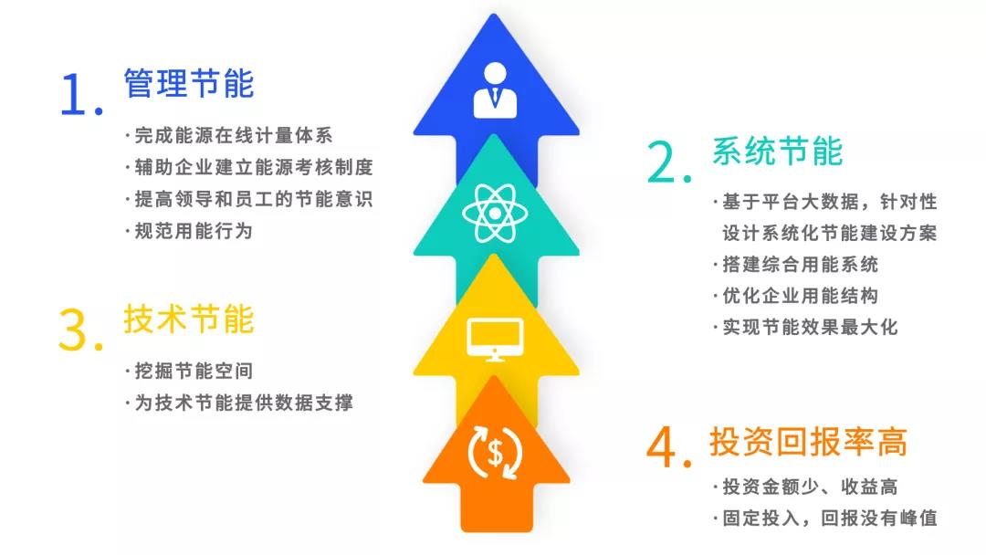 可以基于平臺數據考慮企業進行儲能、光伏、熱回收、工序調整等較為系統的節能建設方案,通過較為系統的規劃來建設綜合用能系統來優化企業的用能結構,最大化節能效果。