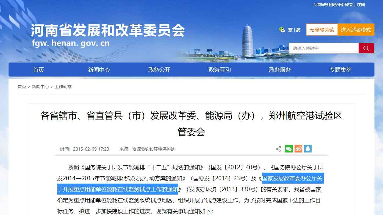 根據(jù)國家發(fā)展改革委、質(zhì)檢總局聯(lián)合印發(fā)的《重點用能單位能耗在線監(jiān)測系統(tǒng)推廣建設(shè)工作方案》及《國家發(fā)展改革委辦公廳關(guān)于開展重點用能單位能耗在線監(jiān)測試點工作的通知》(發(fā)改辦環(huán)資〔2013〕330號)的有關(guān)要求,加快河南省重點用能單位能耗在線監(jiān)測系統(tǒng)平臺建設(shè),推進重點用能單位完善能源計量體系、提升能源管理精細化水平。