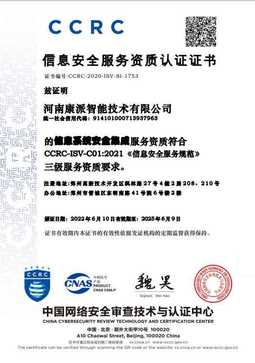 CCRC認(rèn)證證書(shū)